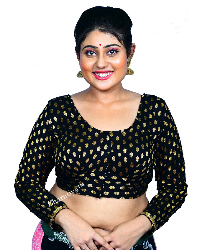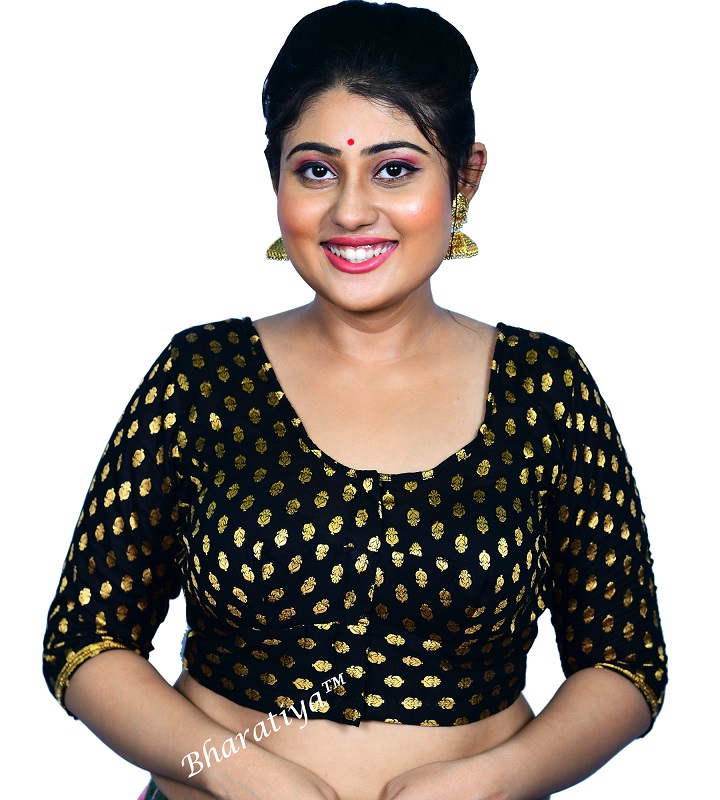 Bharatiya Women’s Premium Brocade Bracelet or 3/4 Sleeve Blouse with Lining, All Season Comfortable | Black