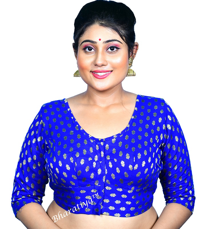 Bharatiya Women’s Premium Brocade Bracelet or 3/4 Sleeve Blouse with Lining, All Season Comfortable | Royal Blue