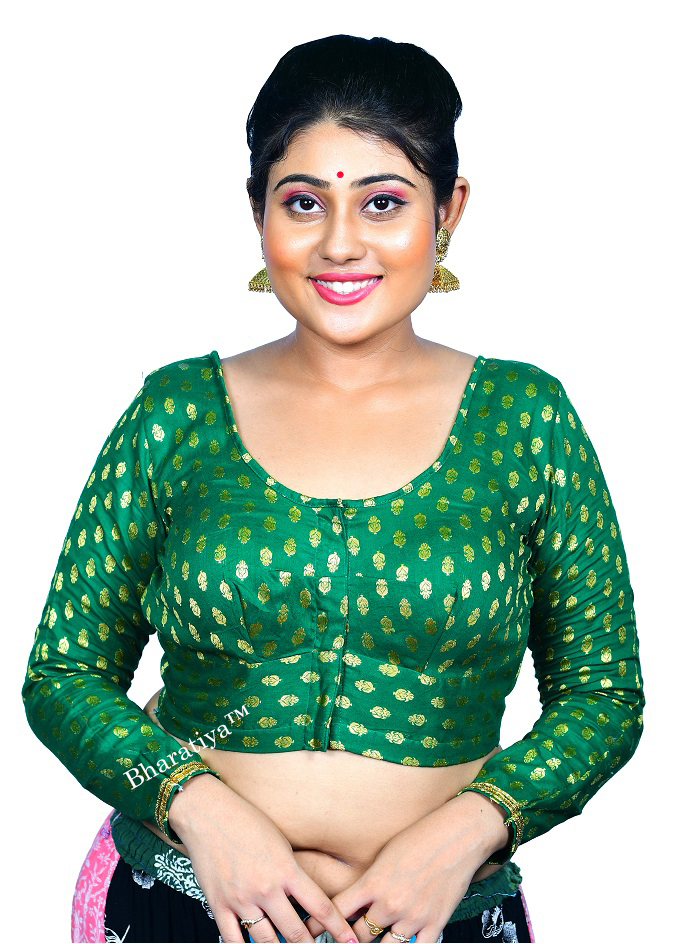 Bharatiya™ Premium Cotton Brocade Full Sleeve Indian Style Blouse (Size 34 to 56) | Green