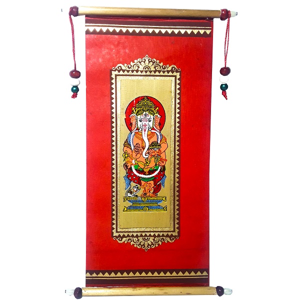 Bharatiya Handcrafted Traditional Rajwadi Lifafa / Royal Envelop, designed with Palm leaf paintings & cane sticks (11×18 Cm) (Sri Ganesh Ji)