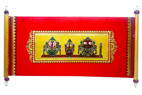Bharatiya Handcrafted Traditional Rajwadi Lifafa / Royal Envelop, designed with Palm leaf paintings & cane sticks (11×18 Cm) (Jagannath Subhadra Balaram)