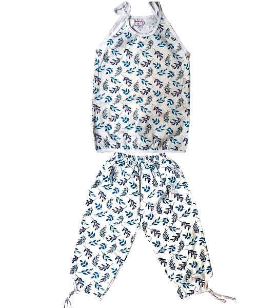 Bharatiya Kids & Girls (1-5 Years) Special Summer set, Pure COTTON sleeveless top and three quarter trouser for all day wear | White
