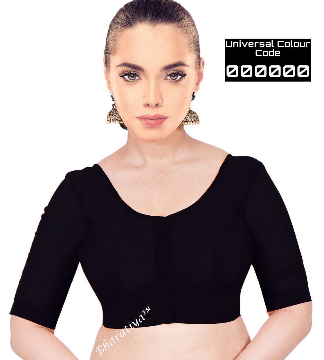 Bharatiya Women’s Alite Cut Cotton Blouse, Elbow (Elbow) Sleeve, All Season Comfortable | Black
