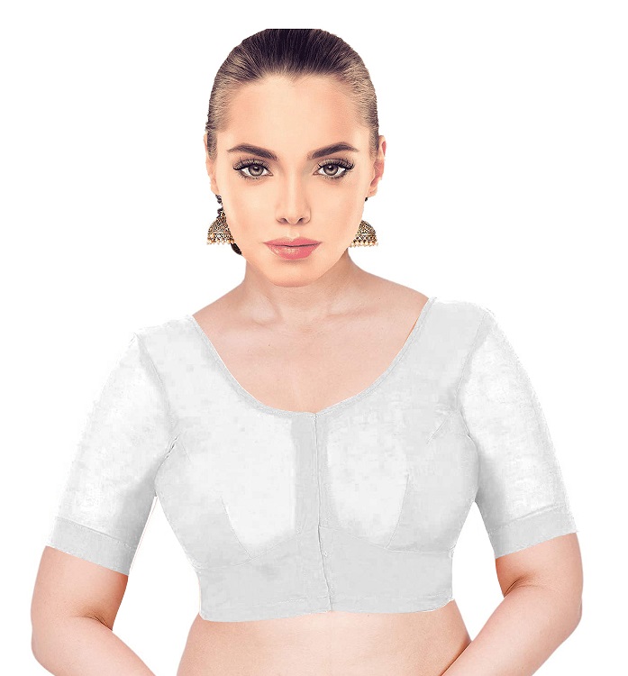 Bharatiya Premium Alite Cut Cotton Saree Blouse, Above Elbow Sleeve, All Season Comfortable | White